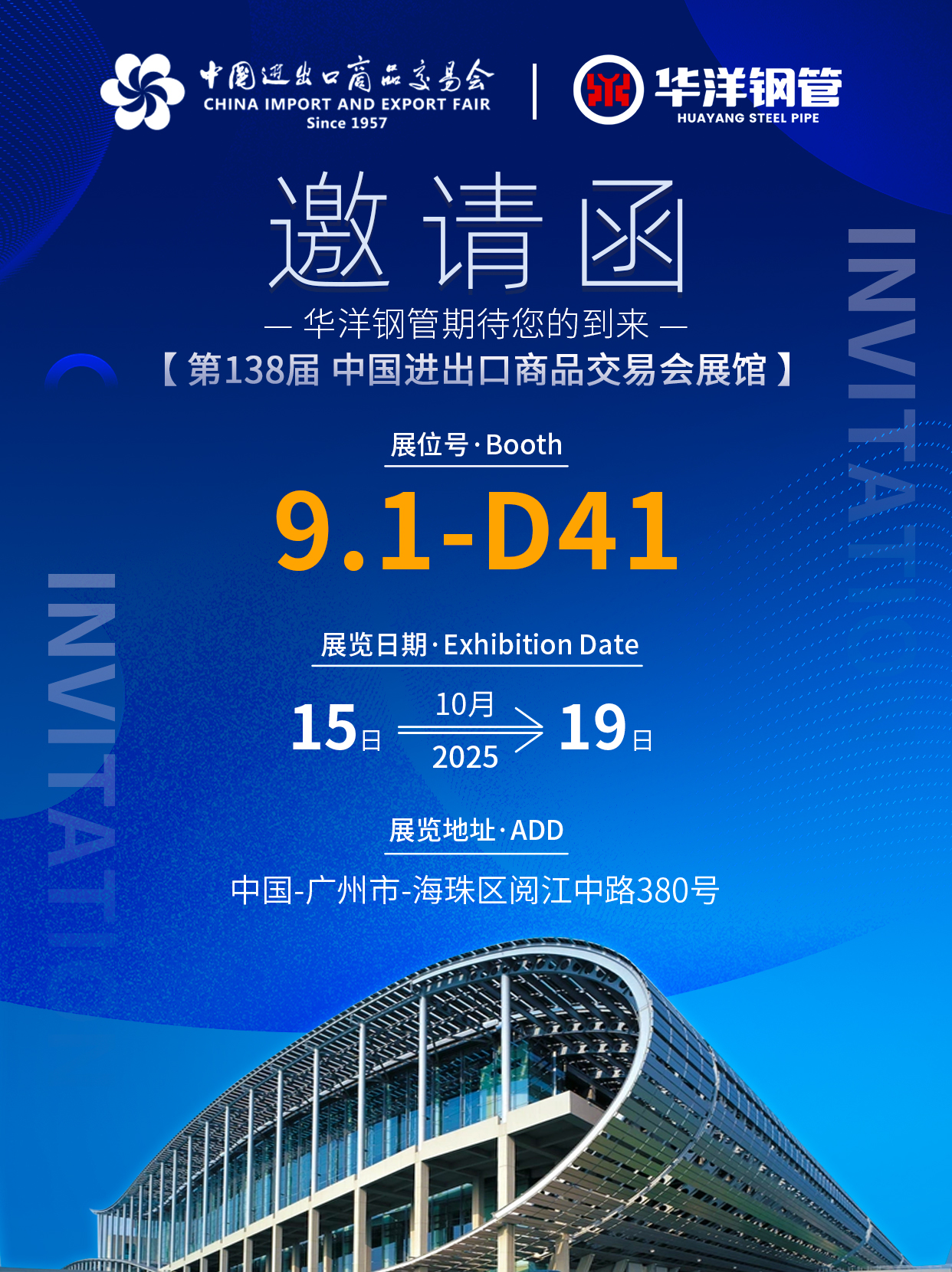 今秋,華洋鋼管將再次與全球合作伙伴齊聚廣州,共話合作,分享最新的鋼管解決方案。